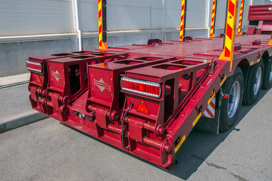 - Все тралы Severest оснащены уширителями с комплектом настила, позволяющими увеличить ширину платформы до 3 м. Для перевозки подобных грузов тралы оснащены выдвижными знаками «Негабаритный груз».
