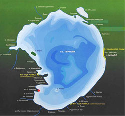 Озеро Тургояк лежит в большой котловине, окружённой со всех сторон невысокими горами и хребтами, имеет почти правильную округлую форму.