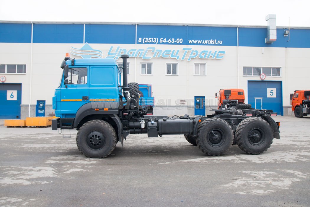 Седельный тягач Урал предназначен для буксирования полуприцепов по всем видам дорог и местности в составе автопоезда полной массой до 38 тонн.