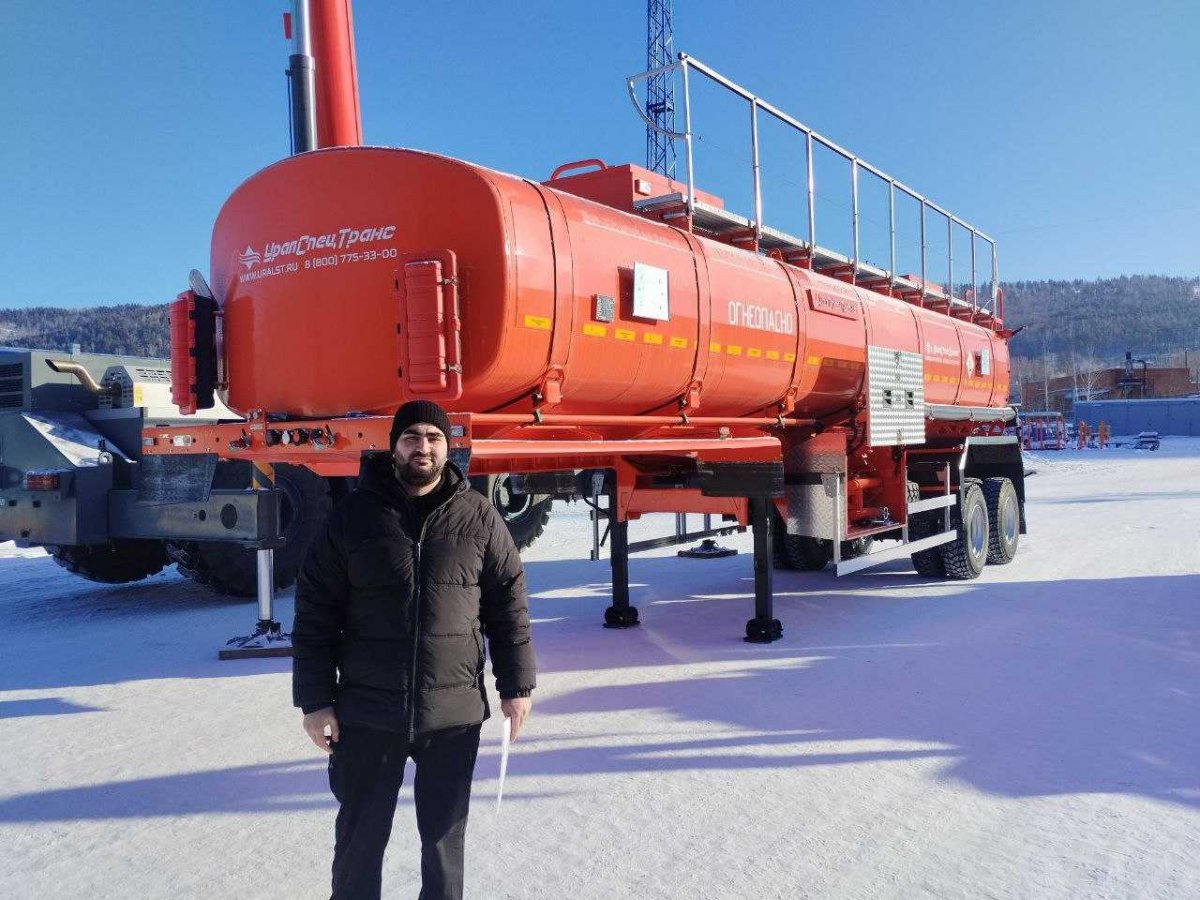 Полуприцеп-цистерна «УралСпецТранс» имеет рамную конструкцию – цистерна укладывается в ложементы рамы полуприцепа. Фиксация цистерны на ложементах при помощи стяжных лент, обеспечивает небольшую свободу цистерны при скручивании рамы, что дополнительно снижает нагрузку на саму цистерну. Такая конструкция имеет высокую прочность и надежность за счет того, что основная часть динамических нагрузок при движении приходится на раму. Стальная рама полуприцепа цистерны из сварного профиля имеет большой запас прочности, дополнительную жесткость конструкции придают вваренные усилители.