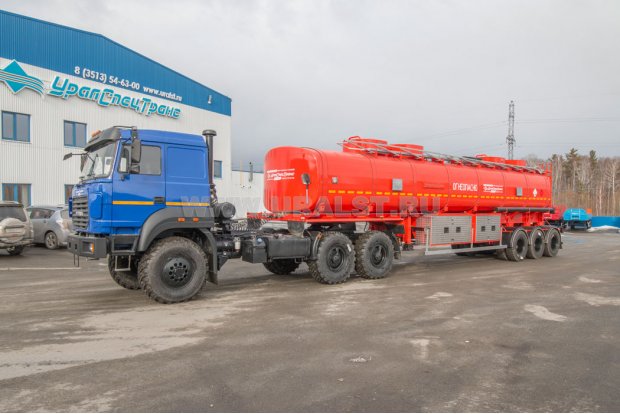 | Несущие элементы | Цистерна установлена в ложементы рамы полуприцепа через резиновый демпфер. Фиксация цистерны на ложементах осуществляется при помощи стяжных лент. |