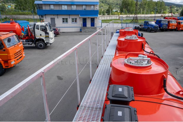 | 7. В задней части ППЦ добавлена площадка из просечного листа с ручками для удобства подъема на цистерну. Лестница расположена строго вертикально и прижата к днищу. Пеналы огнетушителей перенесены на площадку в горизонтальную плоскость. | |