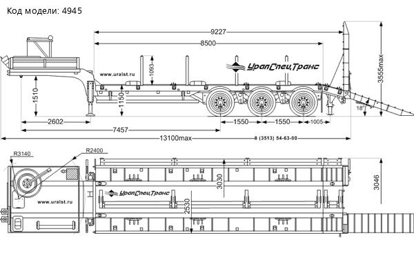 Трал полуприцеп предназначен для перевозки автомобилей и дорожно-строительной техники (асфальтоукладчиков, бульдозеров, экскаваторов) весом до 33,5 тонн.