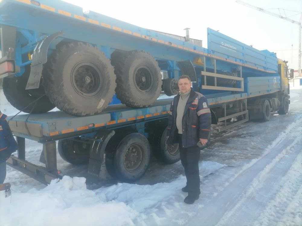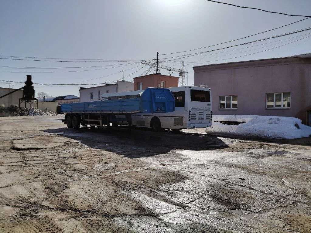 Полуприцеп бортовой, 35 тн, 12 м, 3 оси, односкатный, шины 425/85 R21, рессорно-балансирная подвеска, коники раздвижные, два положения шкворня, высота ССУ 1500 мм, штатный ДЗК с запасным колесом полуприцепа, ДЗК с лебедкой для размещения запасного колеса тягача