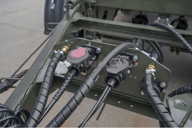 Прицеп цистерна УСТ оборудован системой раздачи топлива (СРТ) для перекачивания нефтепродуктов. Система раздачи топлива (СРТ) оснащена трубопроводом с быстроразъемным соединением (БРС). Система раздачи топлива реализована по схеме: слив самотеком.