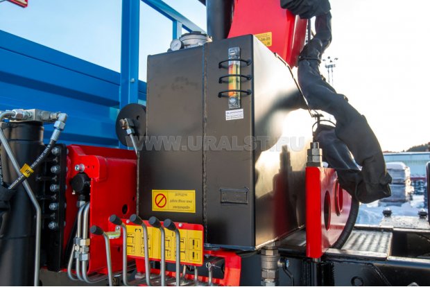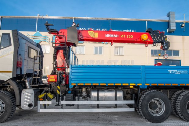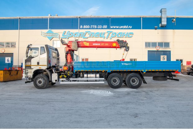 Внутренний размер бортовой платформы составляет 7500 х 2460 мм. Установленная за кабиной крано-манипуляторная установка ИТ-150 позволяет осуществлять самопогрузку и проведение грузоподъемных работ с весом до 7,05 тонн.