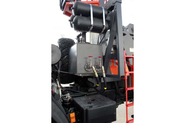 Бурильно-крановая машина на вездеходном шасси Камаз 4326-1036-15 обеспечивает проведение бурильных работ на глубину до 5 метров, а также грузоподъемных работ на высоту до 14,8 метров весом до 4 тонн.