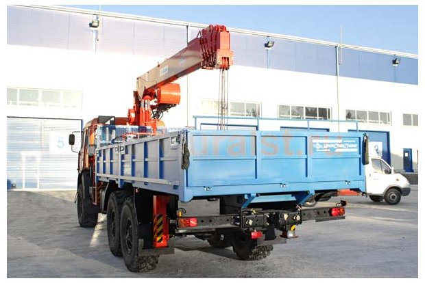 Бортовой автомобиль на шасси Камаз 43118-1098-10 предназначен для перевозки грузов по всем видам дорог и местности. На бортовой автомобиль установлен манипулятор Kanglim KS-2056H, обеспечивающий проведение грузоподъемных работ весом до 7,1 тонн.