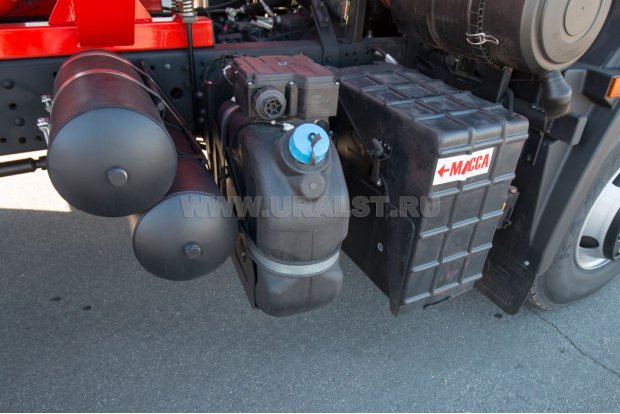 | Крепление цистерны | Надрамник с ложементами закреплен на раме автомобиля стремянками с пружинными компенсаторами. Цистерна установлена в ложементах через резиновый демпфер и закреплена стяжными лентами. |