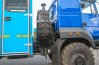 Вход в ремонтный отсек осуществляется помощью съемной лестницы, через входную одностворчатую дверь. Для удобства и экономии пространства лестница в транспортном положении крепится на заднем свесе автофургона при помощи специальных кронштейнов. Конструкция лестницы предусматривает широкие ступеньки, по которым легче производить спуск и подъем. Ступеньки изготовлены из стального рифленого листа, что исключает случайное соскальзывание ноги.