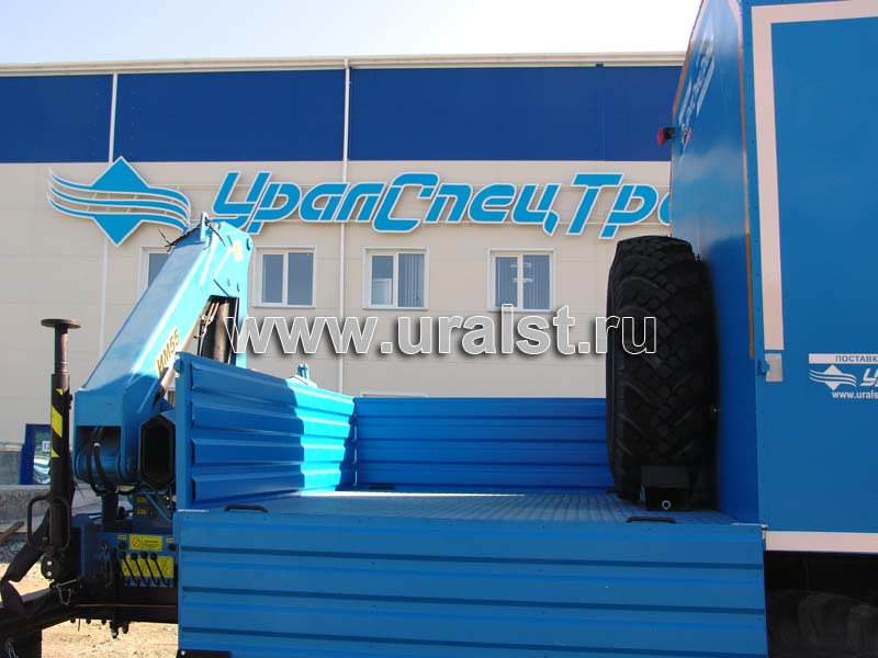 В хвосте автомобиля смонтирована краноманипуляторная установка ИМ-55, обеспечивающая погрузку / разгрузку ремонтируемых объектов на грузовую платформу, весом не более 2 815 кг.