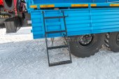 Вход в ремонтный отсек осуществляется по выдвижной лестнице. Для удобства и экономии пространства лестница в транспортном положении убирается в нишу под полом кузова-фургона. Конструкция лестницы предусматривает широкие ступеньки, по которым легче производить спуск и подъем. Ступеньки изготовлены из стального рифленого листа, что исключает случайное соскальзывание ноги.