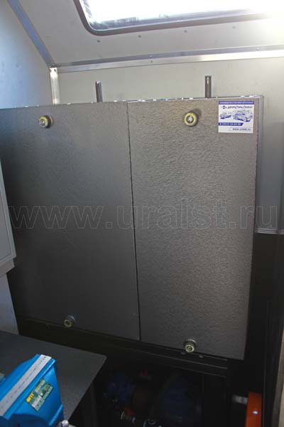 Кузов-фургон ПАРМ оборудован специальной нишей, в которой размещены поддоны и ложементы для бочек (200 л). Также для быстрого доступа и удобства эксплуатации сварочного выпрямителя предусмотрен специальный люк.