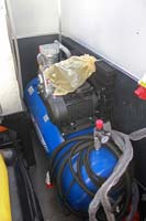 Также в мастерской установлен автономный воздушный отопитель, который выполняет функцию поддержания необходимой температуры. Воздушный отопитель использует собственный источник питания и независим от штатной системы отопления. Также отопитель имеет отвод в нишу для размещения бочек и катушек, что позволяет поддерживать нужную консистенцию масла.