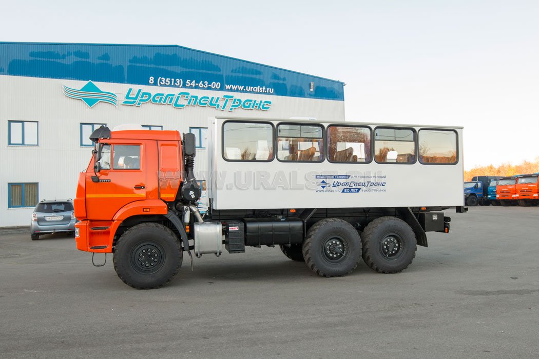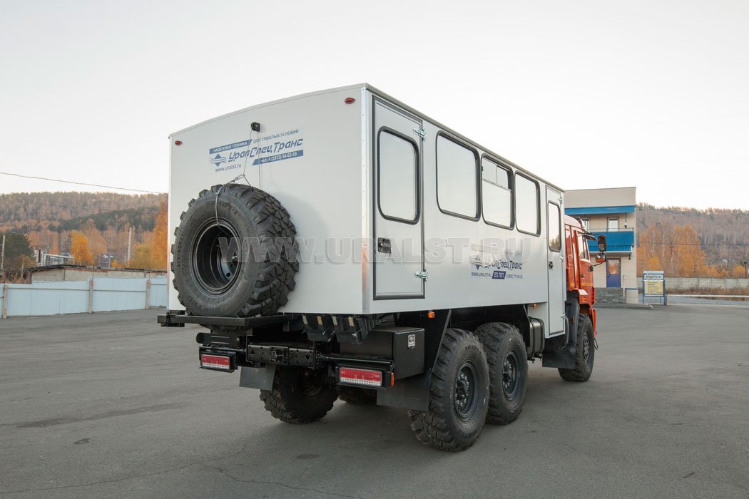 Вахтовый автобус УСТ-54535 Камаз 43118-50 предназначен для оперативной доставки рабочих (ремонтных, строительных, геолого-разведывательных и т.п.) бригад в количестве 22 человек в салоне кузова-фургона на объект по дорогам общего пользования, а также вне дорог общего пользования.