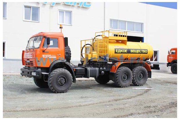 СИН-37.05 на шасси Камаз 43118 предназначен для транспортировки, временного хранения и перекачки ингибированных растворов соляной кислоты с концентрацией до 32%, глинокислот, КСПО-2, а также растворов щелочей и солевых растворов.